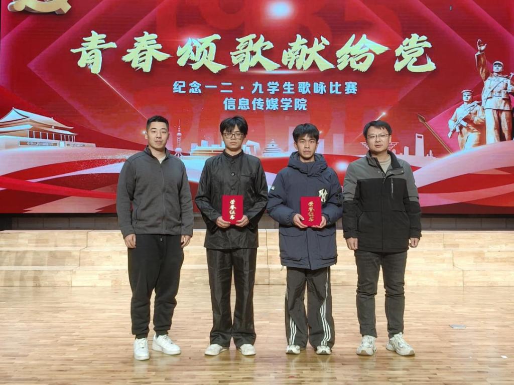 比赛尾声,评委团围绕演唱感染力、团队协作度等方面评选出一等奖1名,二等奖2名,三等奖5名和优秀组织奖2名。刘学文、侯枫等领导依次为获奖队伍颁发证书,鲜红的荣誉与同学们的笑容相映,台下的欢呼与掌声将现场氛围推向最后高潮。