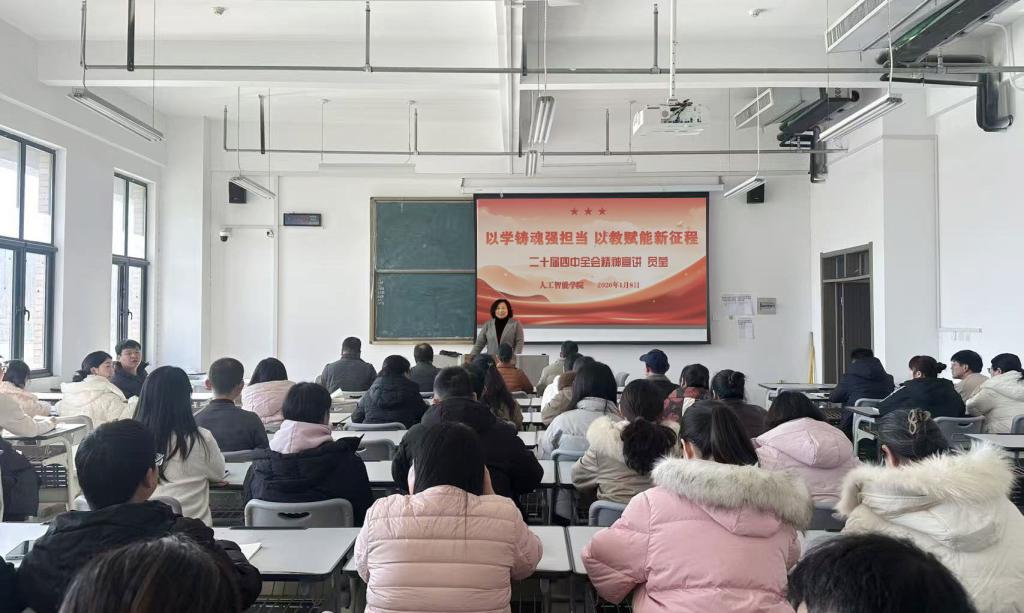 为推动党的二十届四中全会精神与教育教学工作深度融合,切实把全院教师的思想和行动统一到党中央决策部署上来,1月7日下午,党委委员、副院长员莹以“以学铸魂强担当 以教赋能新征程”为题,为人工智能学院全体教师讲授二十届四中全会精神专题党课。