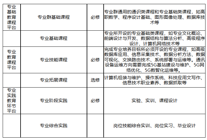 专业拓展课程:计算机组装与维护、操作系统、科技应用文写作、信息技术职业素养、数据抓取。